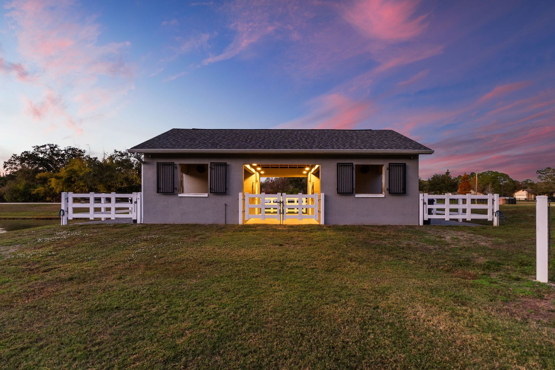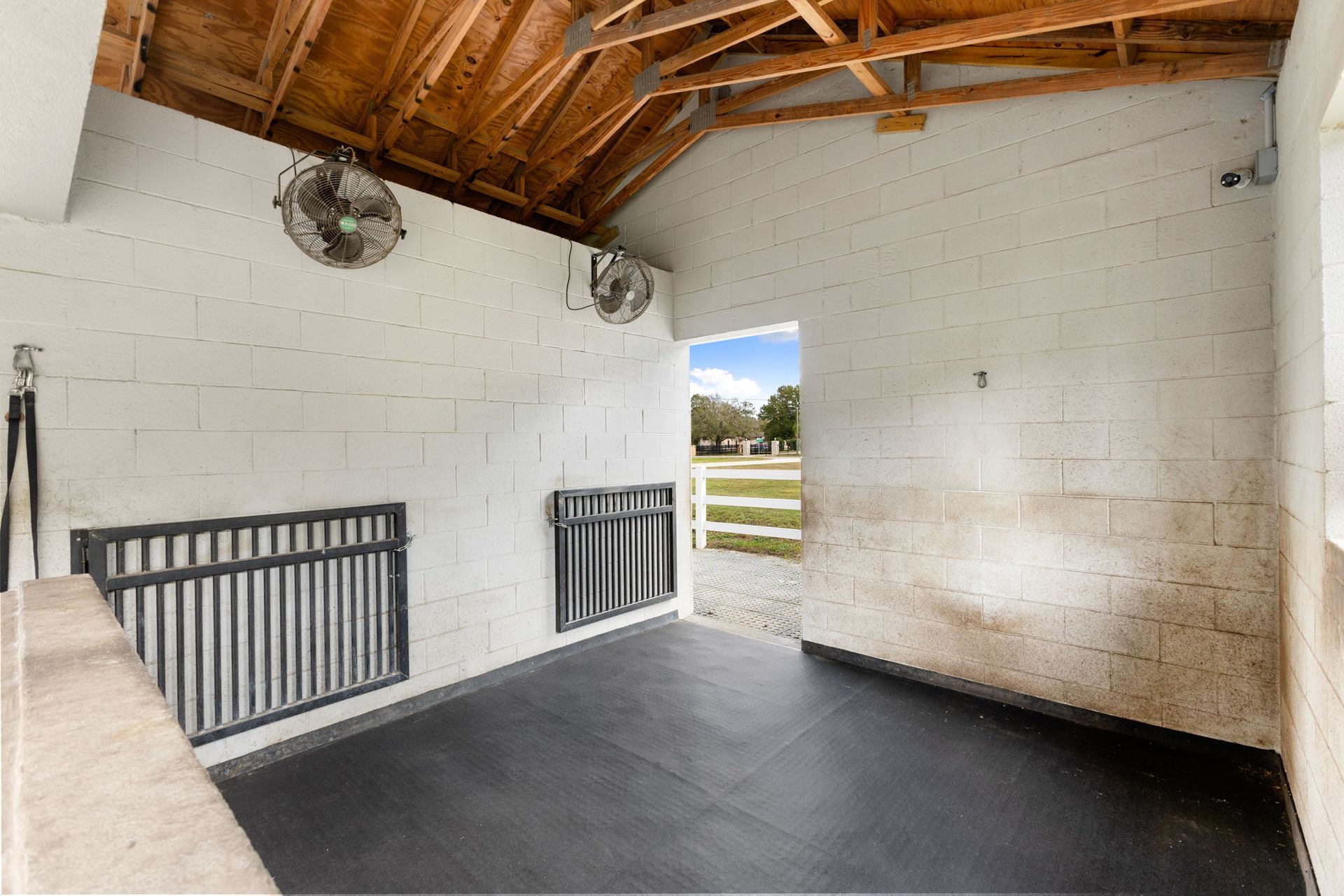 exceptional comfort while minimizing odor. Dual fans in each stall and large run-outs with mud mats create an ideal setup for your horses.
