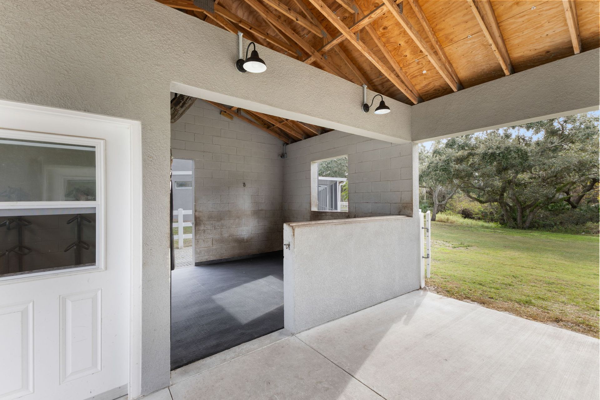 custom-built block barn, completed in 2021 with concrete-filled walls designed for